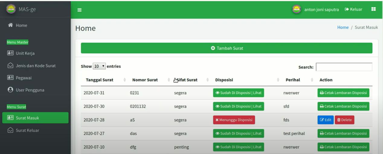 Sistim informasi pengolahan surat , sudah lama juga saya tidak update website ini, kali ini saya akan berbagi aplikasi surat masuk, surat keluar, disposisi dan penunjukan untuk berbagai bagian dalam suatu instansi, aplikasi ini mempunyai fitur lengkap dan sangat mudah untuk di sesuaikan dengan instansi. untuk fitur dari aplikasi sistim informasi surat adalah :